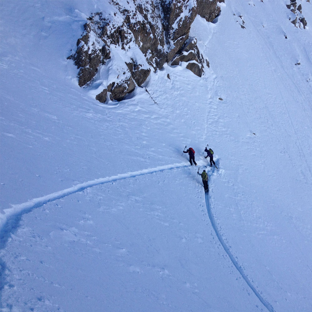 La montagne reste un environnement imprévisible. Le guide limite considérablement les dangers grâce à son expertise en ski de randonnée, alpinisme et autres disciplines.