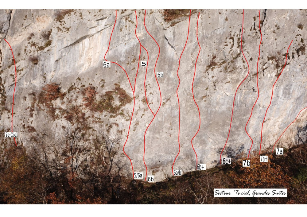 Joli secteur aux cotations modérées, qui apporte un plus à cette magnifique falaise des Grandes Suites, qui est un must des spot de grimpe autour d'Annecy! Les voies font 25 m de hauteur maximum, équipées en plaquettes et scellements, de façon hétérogène, sans engagement inutile. Faire attention toutefois aux départs, notamment après des périodes de pluie. Cette attention portée à la sécurité rejoint notre approche de la gestion des risques en montagne.