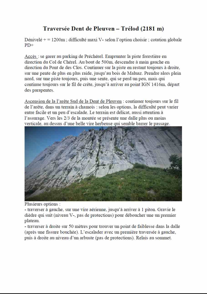 Au Sud, le Trélod se poursuit jusqu'à la Dent de Pleuven. Un sommet à part entière, surtout lorsqu'on l'observer depuis la Compôte, ou Ecole en Bauges. C'est une véritable proue qui fait face l'horizon. D'où peut être cette dénomination qui sonne le vent, la mer, les embruns… Cette dimension poétique rejoint notre philosophie de rêver en montagne.